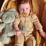 Meet Beau Bunny, a gentle soul with a passion for nature and gardening. This sage green beauty is crafted from super soft plush exterior and features a calming color palette inspired by OB's coastal roots in Byron Bay. Weighted beads provide extra comfort, making Beau Bunny an ideal companion for nap time, playtime, or cuddling. Perfect for little ones who appreciate nature, or as a thoughtful gift for baby showers or Easter.