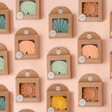 Our flexible and durable Teether Toys are made from 100% Food Grade Silicone. These silicone products are derived from sand and are environmentally friendly, sustainable and reusable. Our silicone is FDA approved, non-toxic and odourless. Contains no BPA, latex, lead, or phthalates. Silicone is a great sensory material and is soft on sore gums.