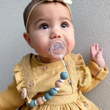 This stylish eco-friendly pacifier chain keeps your little one's pacifier free from falling to the floor. They are made from 100% Food Grade Silicone and Sustainably Harvested Beechwood Timber secured by strong nylon cord.