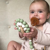 Our eco-friendly mint wooden teether for babies is made of Sustainable Beechwood Timber & Food Grade Silicone. This is the best option over mainstream baby teethers, as they are eco-friendly, non-toxic, and free from harmful leads, metals, BPA, chemicals & phthalates. Silicone is a great sensory material and is soft on sore gums. Beechwood is naturally anti-bacterial, making it a safe teether for babies. As a sustainable baby store, each one of our baby products is made with your baby's best interest at heart.